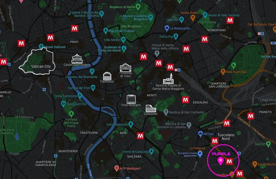 Das 60 m^2 große Appia Purple Terrace Apartment In Rome befindet sich im Bezirk San Giovanni von Rom, circa 300 Meter von der U-Bahn-Station Ponte Lungo entfernt.